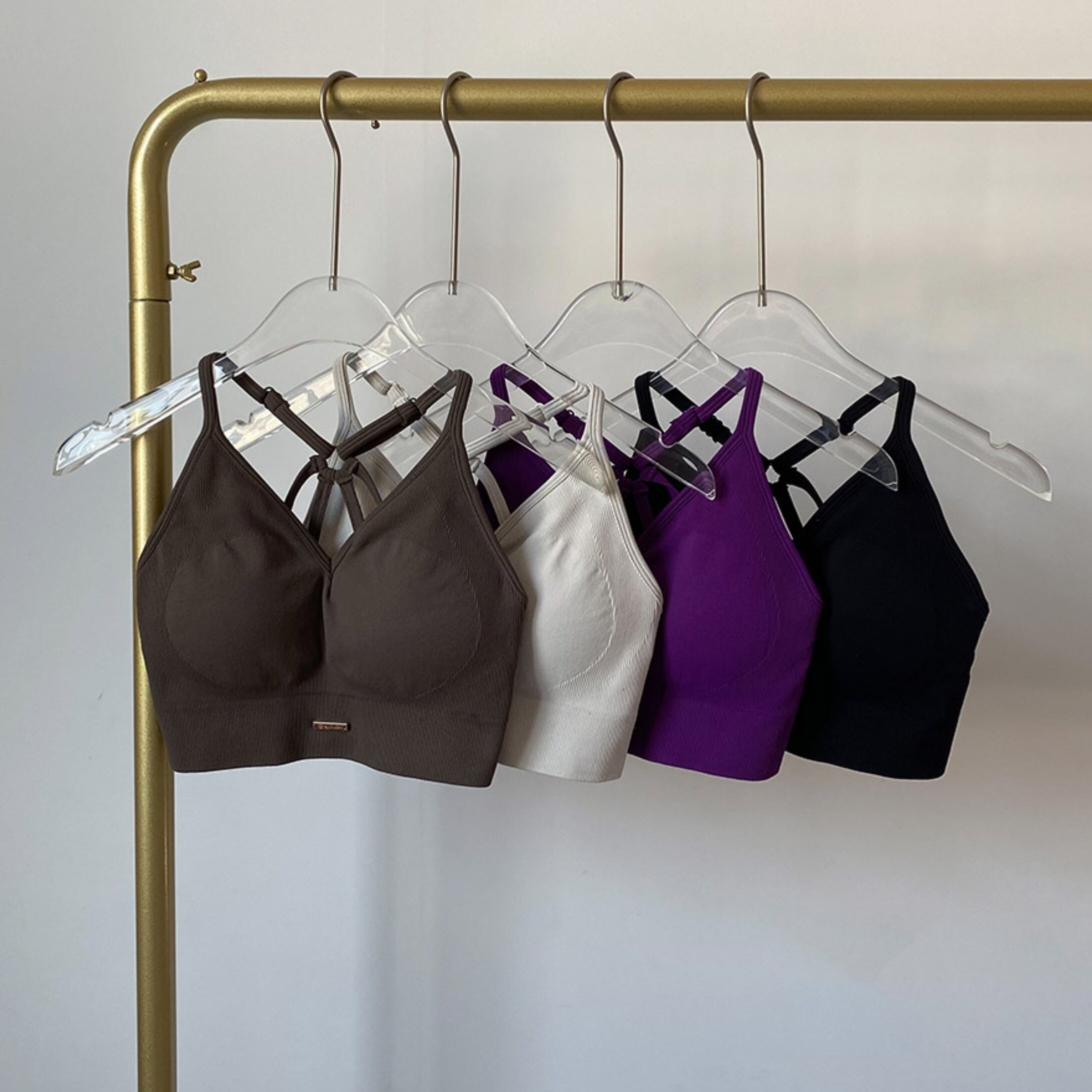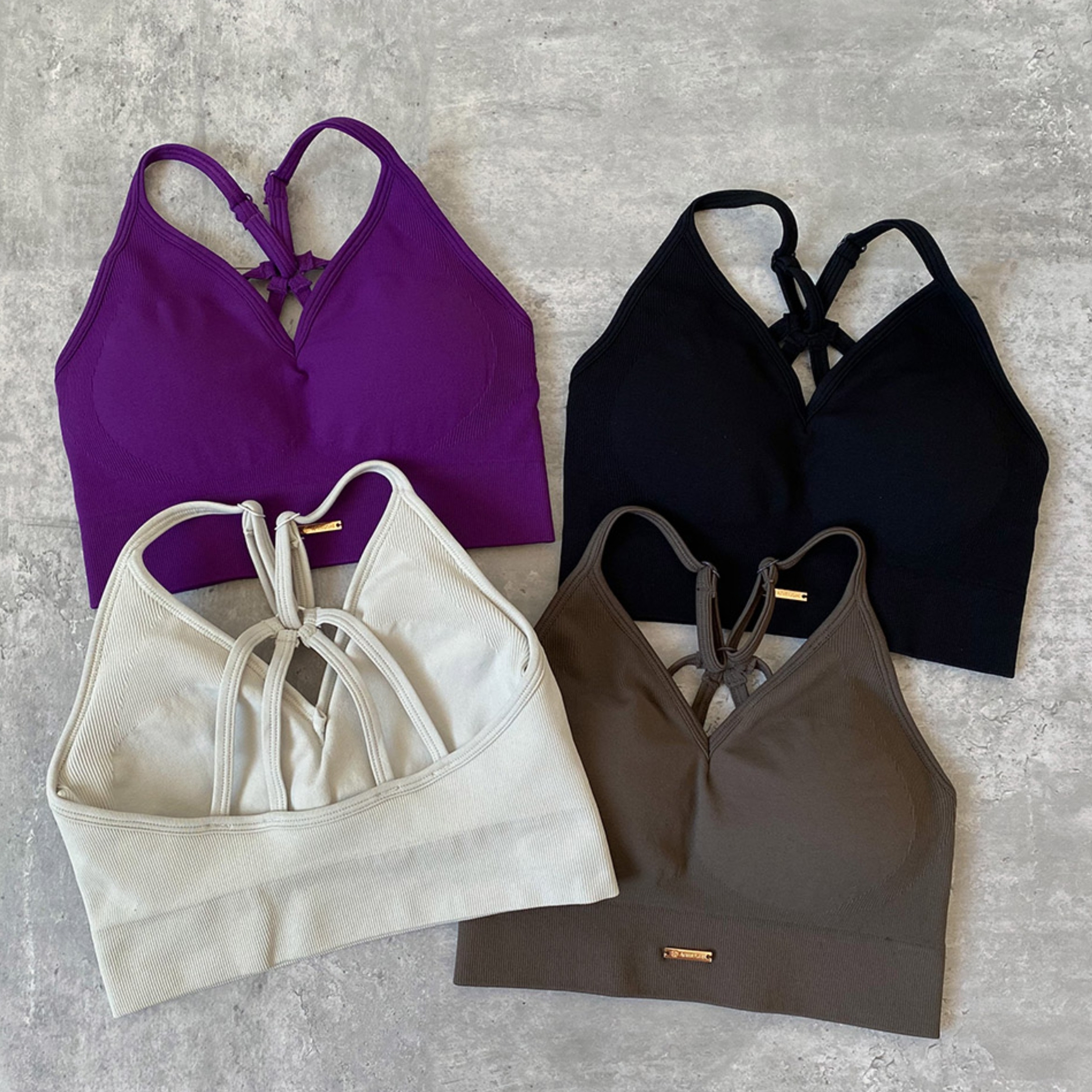 【ゴールドロゴスポーツブラ】 上品な輝きがアクセント|洗練された大人のおしゃれスポーツウェア #027